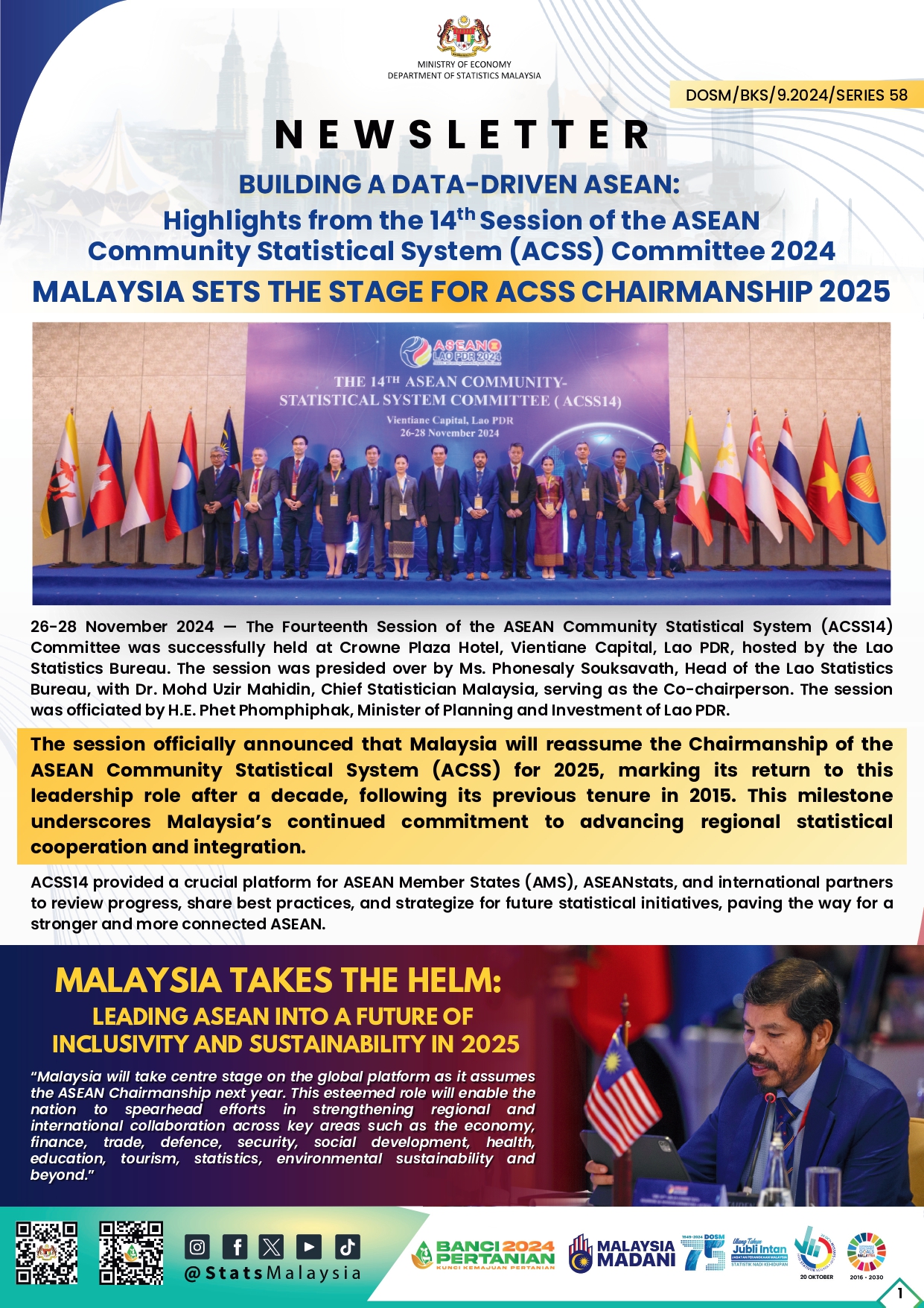 DOSM/BKS/9.2024/SERIES 58 - BUILDING A DATA-DRIVEN ASEAN: HIGHLIGHTS FROM THE 14TH SESSION OF THE ASEAN COMMUNITY STATISTICAL SYSTEM (ACSS14) COMMITTEE 2024 “MALAYSIA SETS THE STAGE FOR ACSS CHAIRMANSHIP 2025”