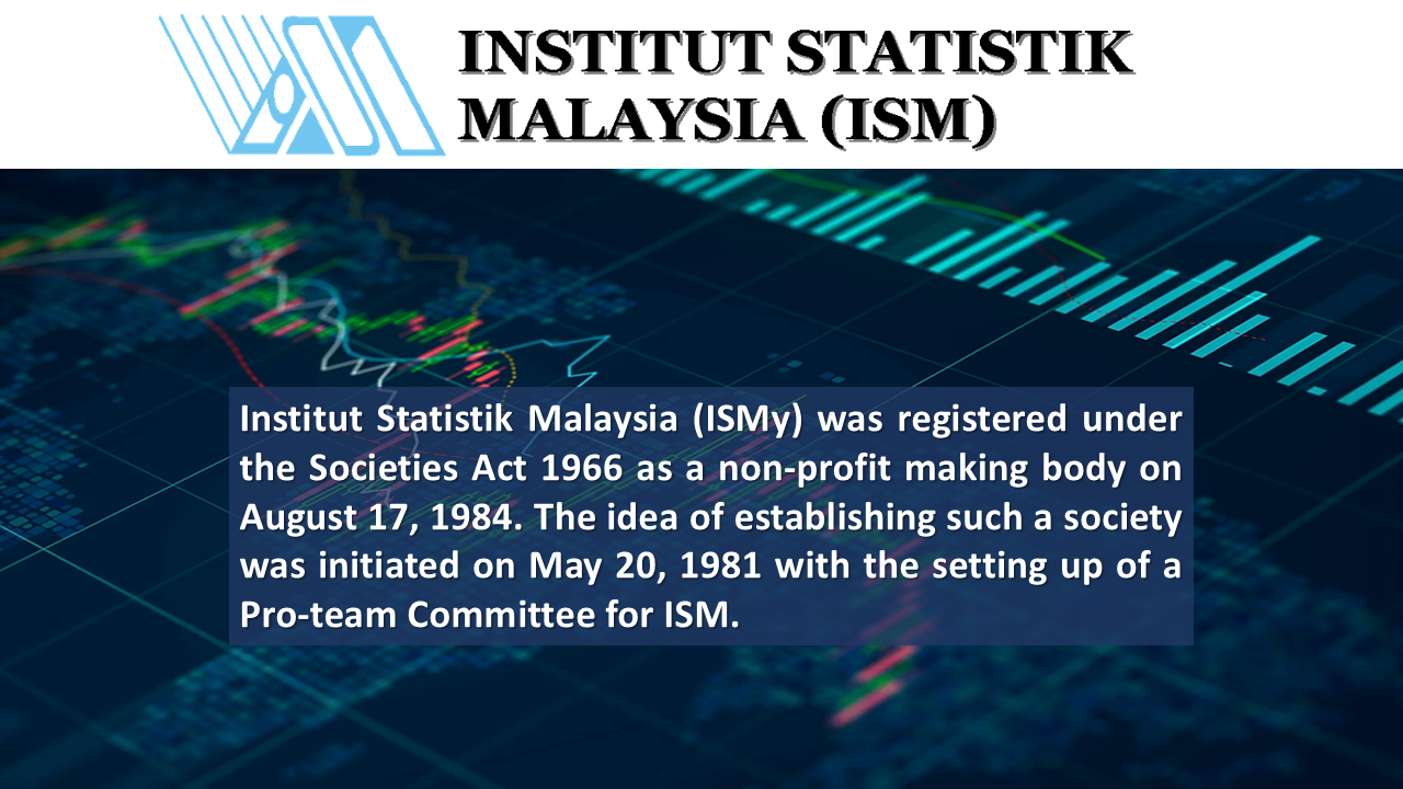 The Malaysia Institute of Statistics, also known as ISM, is registered under the Societies Act 1966 as a non-profit making body in 17 August 1984. The idea of establishing such a society was initiated on 20 May 1981 with the setting up of a Pro-team Committee for ISM.