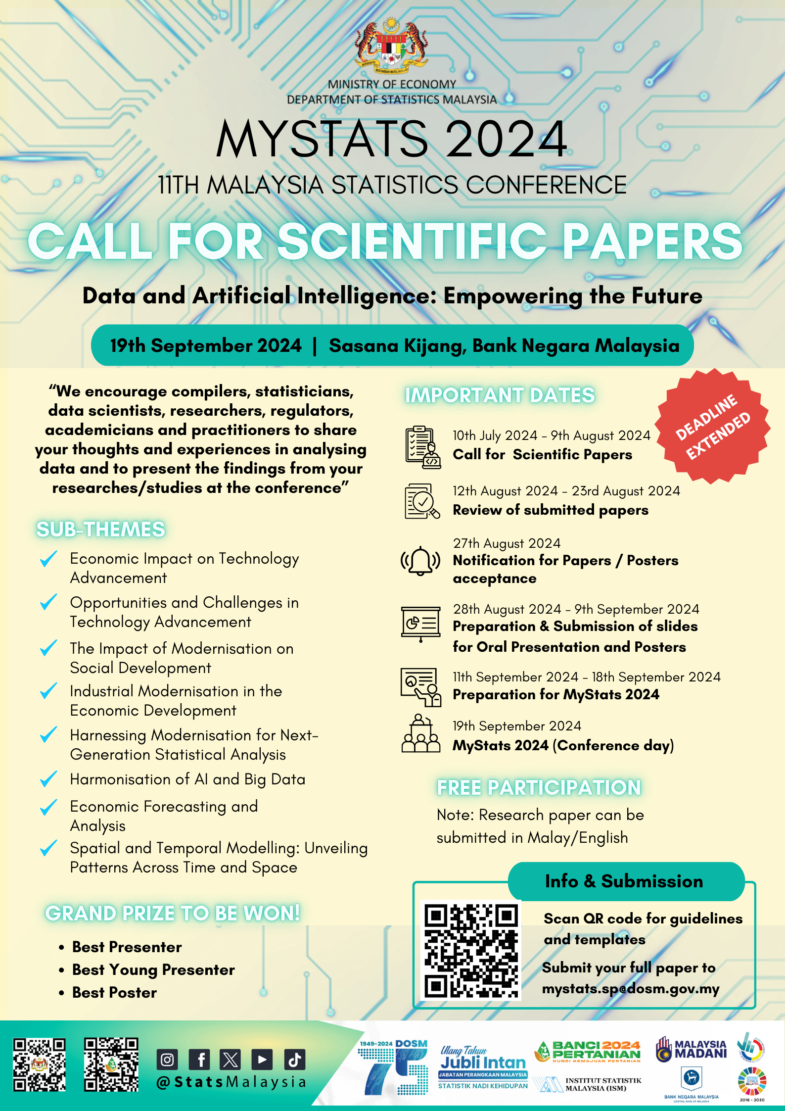 MyStats 2024 is the 11th edition conference which will be held on 19 September 2024 with the theme Data and Artificial Intelligence: Empowering the Future.