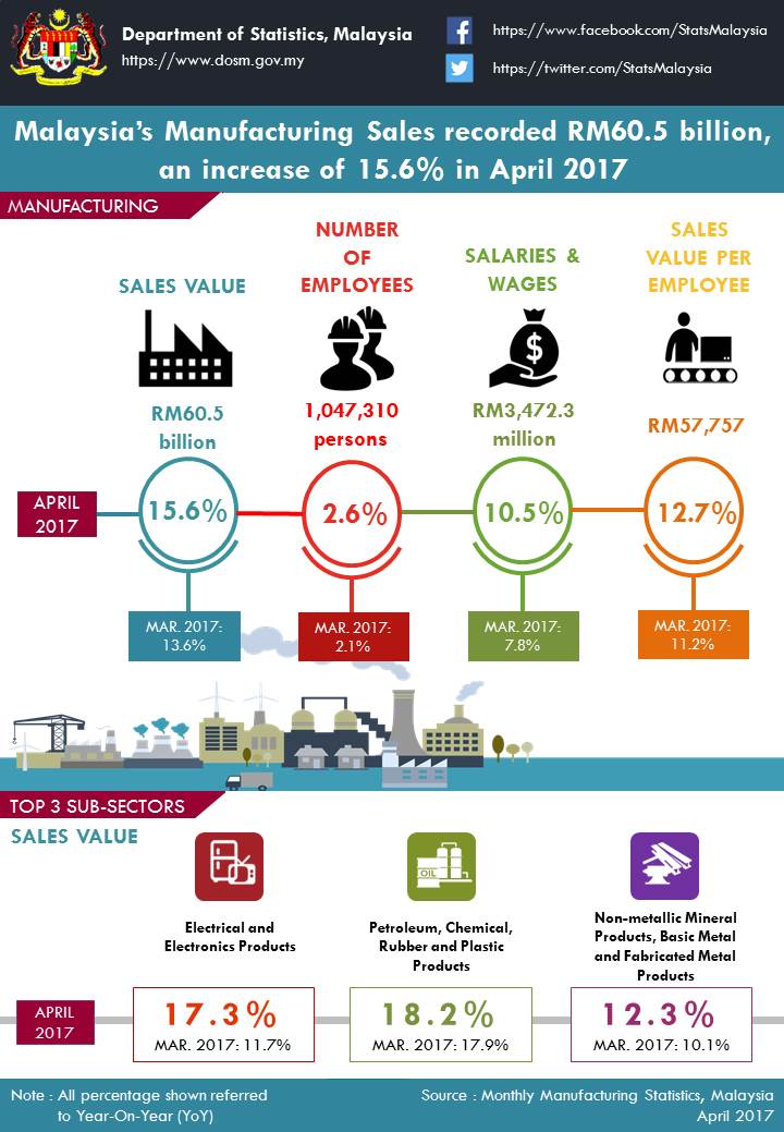 Manufacturing Sales registered RM60.5 billion in April 2017