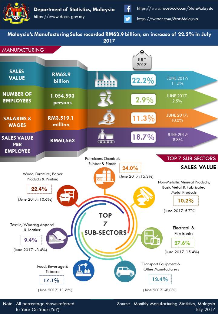 Manufacturing sector registered a sales value of RM63.9 billion in July 2017