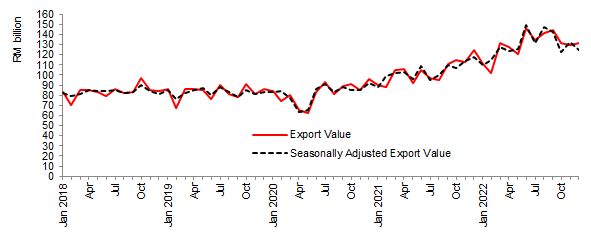 export value in December 2022 stood at RM131.9 billion, increased 6.0 per cent