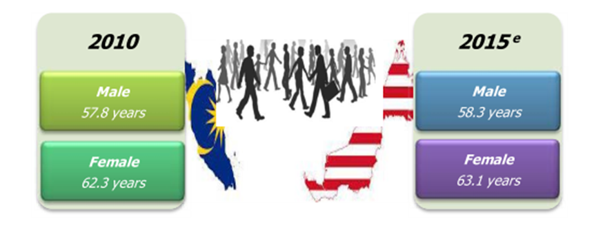 Life expectancy at birth of Malaysian residents continued to rise every year. In 2015, a newborn is expected to live to 74.8 years, increased by 0.7 years as compared to 74.1 years in 2010.
