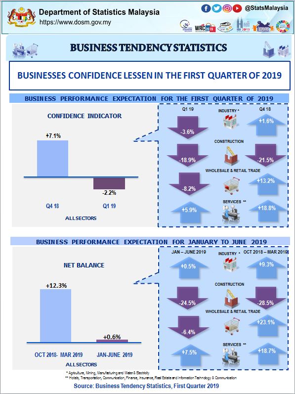 Businesses confidence lessen in the first quarter of 2019. After showing an increase in the fourth quarter of 2018, the confidence indicator dropped to -2.2 per cent in the first quarter of 2019.