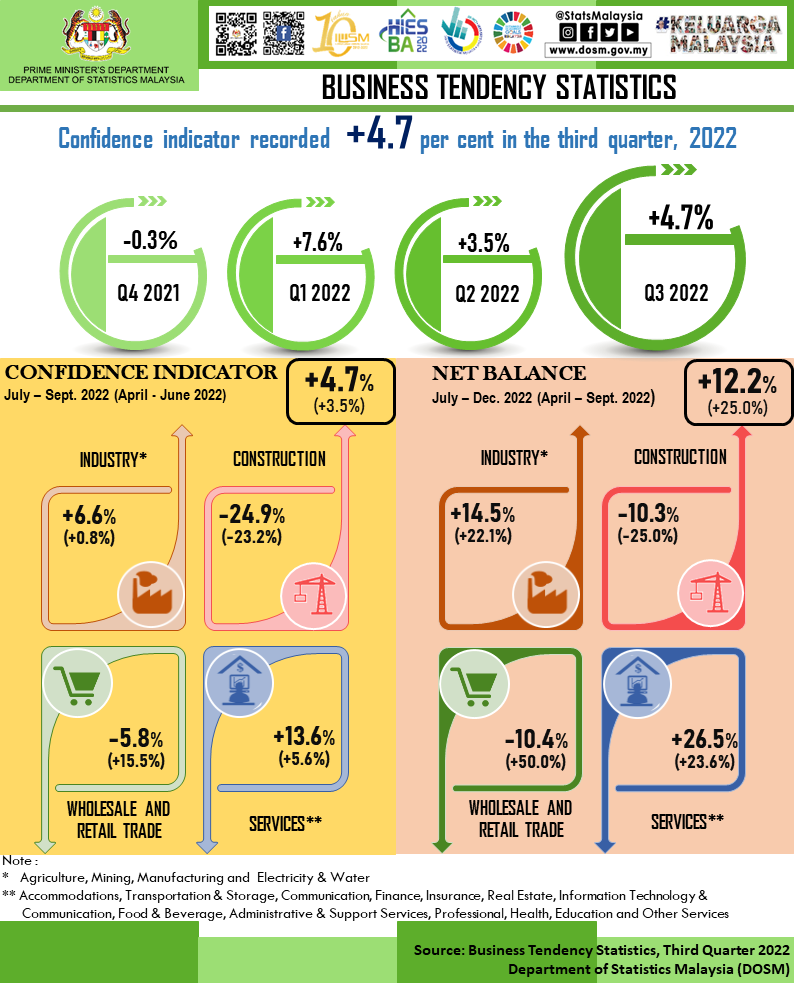 The full publication of the Business Tendency Statistics Third Quarter 2022 can be downloaded through eStatistik portal.