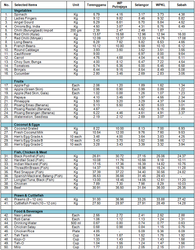 In terms of overall CPI, three states surpassed the national CPI rate of 1.3 per cent recorded in March 2018 as compared to March 2017. The states are Selangor & Wilayah Persekutuan Putrajaya (+1.6 per cent), Melaka (+1.5 per cent) and Wilayah Persekutuan Kuala Lumpur (+1.4 per cent).