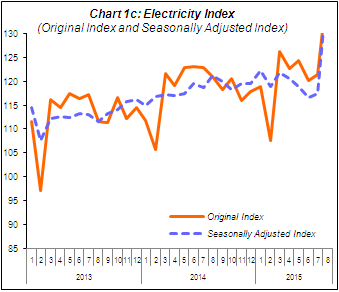 PERFORMANCE OF ELECTRICITY SECTOR The Electricity sector output registered a strong growth of 15.9% in August 2015 on yearly basis. In seasonally adjusted terms, Electricity sector output grew 19.8% as compared to the previous month. |