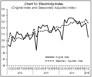 PERFORMANCE OF ELECTRICITY SECTOR The Electricity sector output grew by 1.9% in February 2015 on yearly basis. In seasonally adjusted terms, Electricity sector output contracted by 2.6% in February 2015 compared to the previous month. |