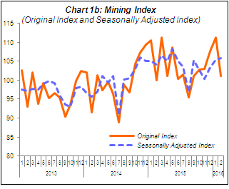 PERFORMANCE OF MINING SECTOR The Mining sector output grew 1.1% in February 2016 as compared to the same month in 2015. This growth was mainly due to the increase of Crude Oil index (1.3%) and Natural Gas index (0.7%). On a seasonally adjusted terms, output for the Mining sector increased 0.4% as compared to January 2016. |