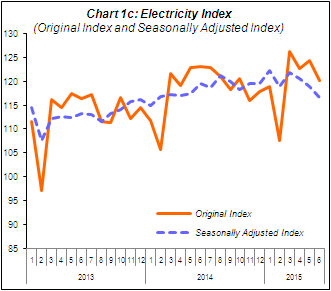 The Electricity sector output fell 2.3% in June 2015 on yearly basis. In seasonally adjusted terms, Electricity sector output contracted by 2.0% in June 2015 as compared to the previous month.