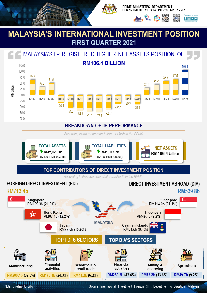 The full publication of International Investment Position (IIP) Q1 2021 can be downloaded through eStatistik portal.