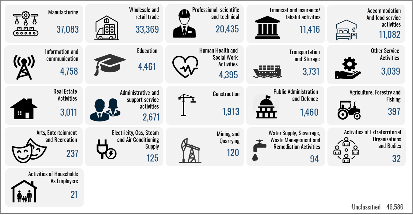 Looking at the details of vacancies advertised online by sector, the Services and Manufacturing sectors are the most notable sectors offering jobs in Q4 2021. The top three services sub-sectors posting job vacancies online in Q4 2021 were Wholesale and Retail Trade; Repair of Motor Vehicles, Professional, Scientific and Technical, and Financial and Insurance/ Takaful activities.