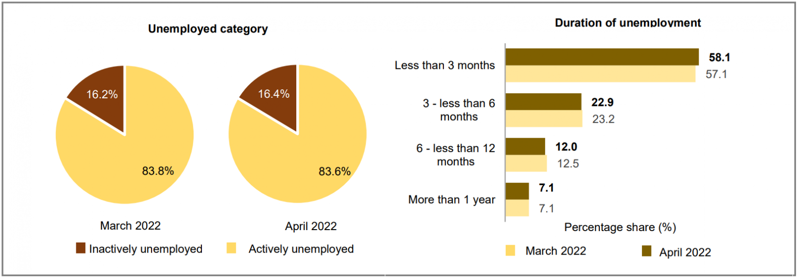 Chart 4: Unemployed category and duration of unemployment, March and April 2022