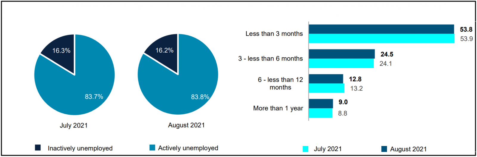 Chart 4: Unemployed category and duration of unemployment, July and August 2021
