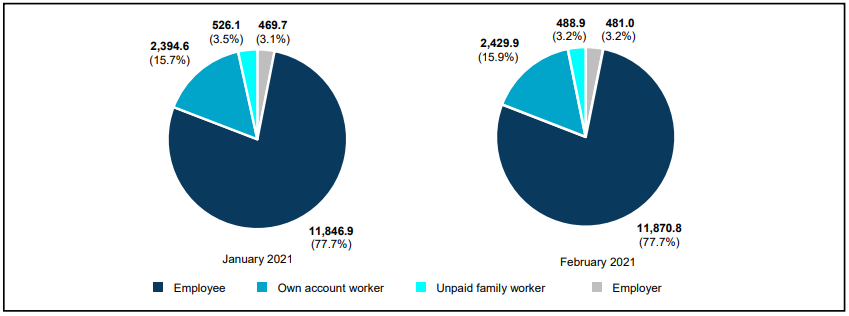 Chart 2: Employed person by status in employment, January 2021 and February 2021