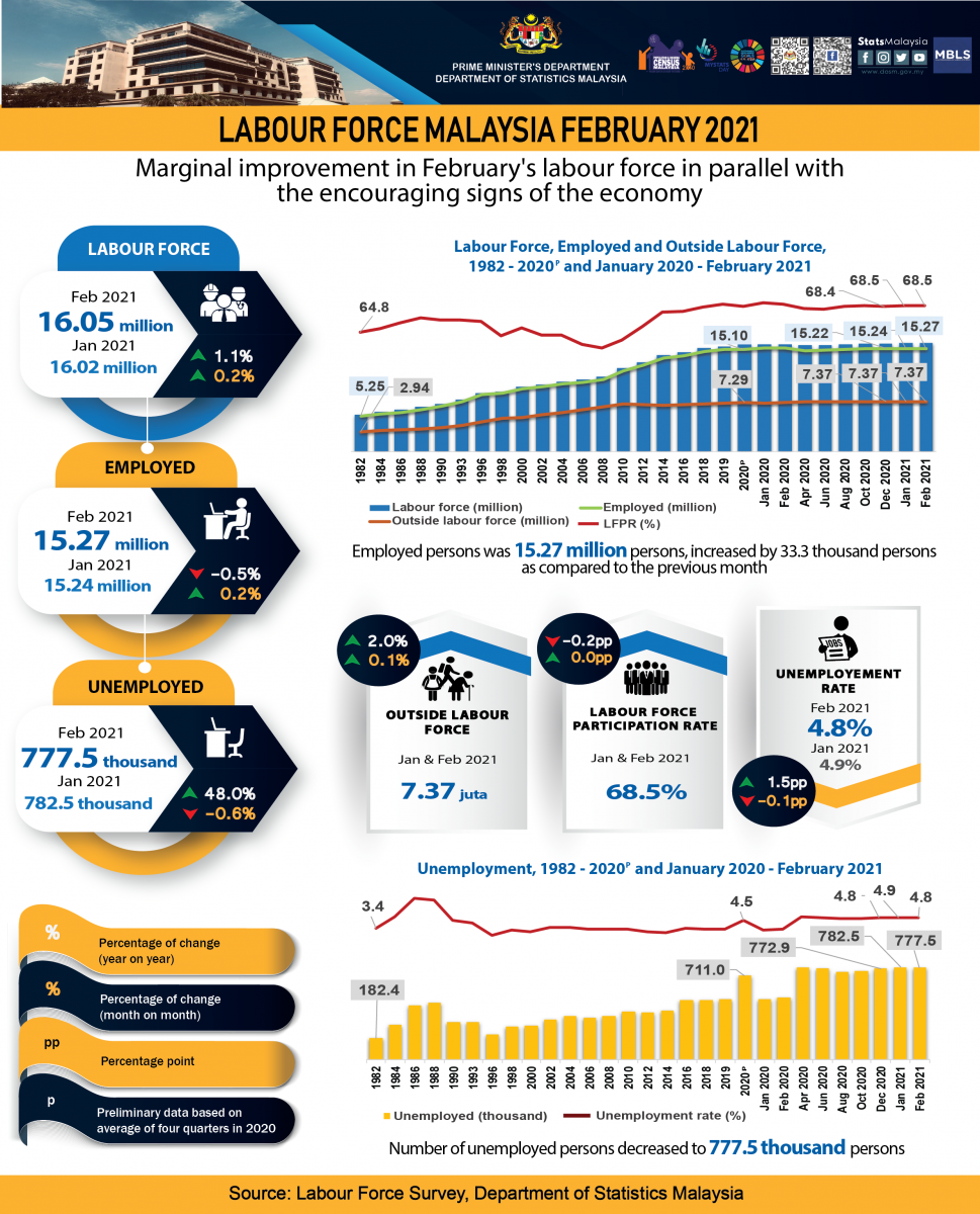 Key Statistics of Labour Force in Malaysia, February 2021