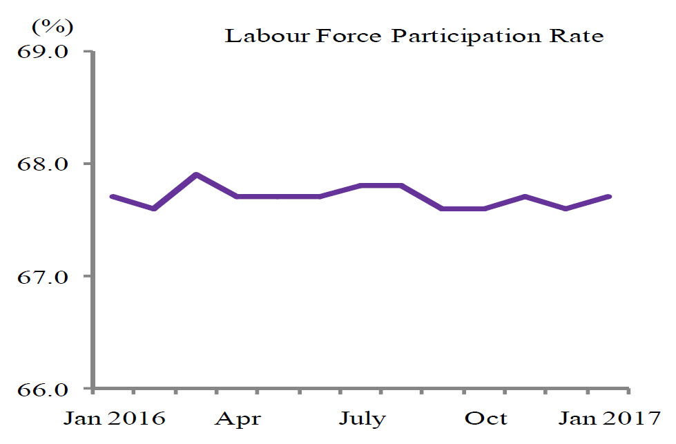 Year-on-year comparison showed that labour force participation rate in January 2017 was the same as recorded in January 2016.