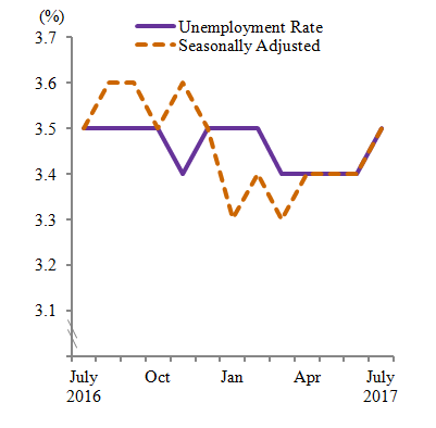 On a seasonally adjusted month-on-month basis, the unemployment rate in July 2017 was 3.5 per cent, an increase of 0.1 percentage point compared to the previous month.