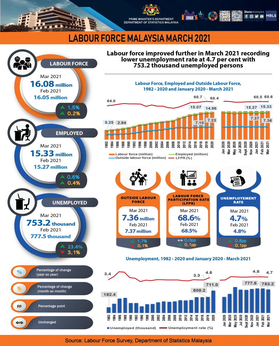 MALAYSIA’S LABOUR FORCE IMPROVED FURTHER IN MARCH 2021