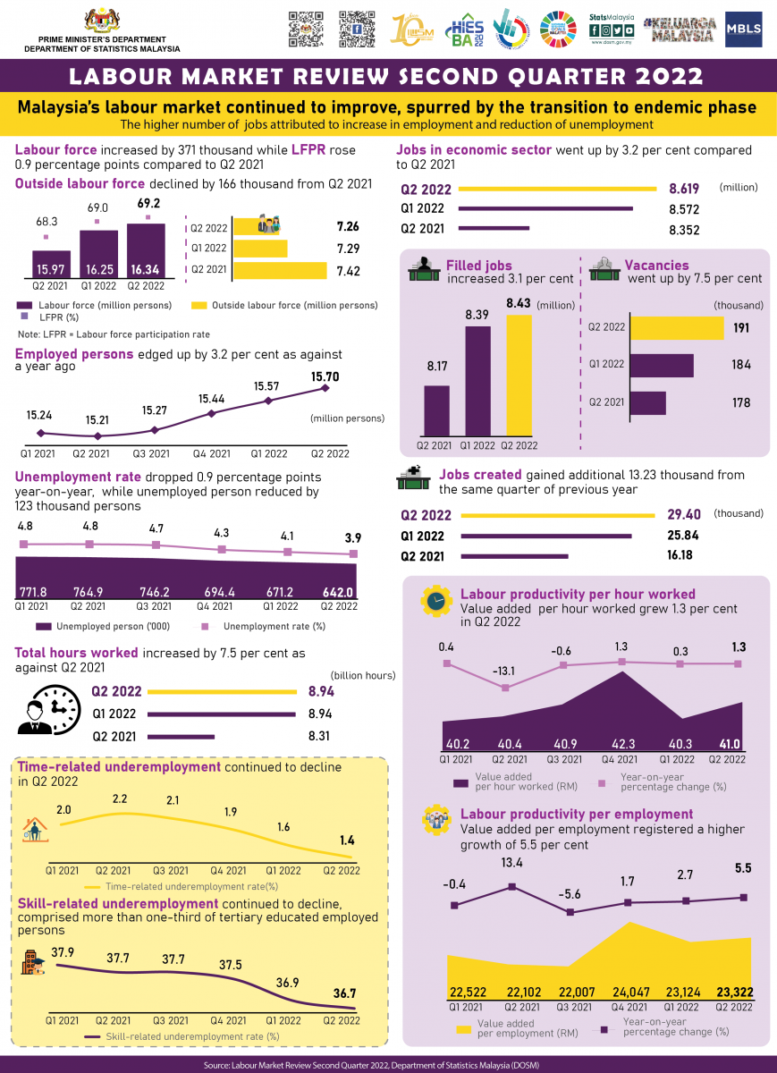 The full publication of Labour Market Review Second Quarter of 2022 can be downloaded through eStatistik Portal.