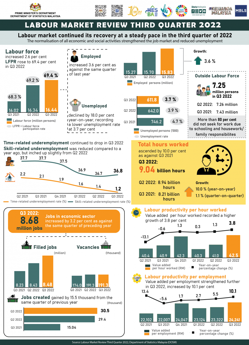 The full publication of Labour Market Review Third Quarter of 2022 can be downloaded through eStatistik Portal.