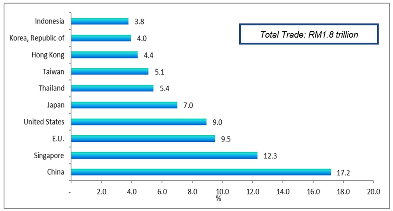 The following charts show Malaysia's major trading partners for January - December 2019.