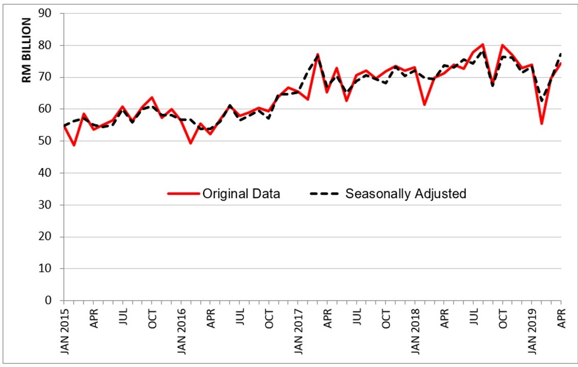 - On a m-o-m basis, imports also expanded 6.7% or RM4.7 billion from RM69.7 billion. In seasonally adjusted terms, imports increased 11.3%.