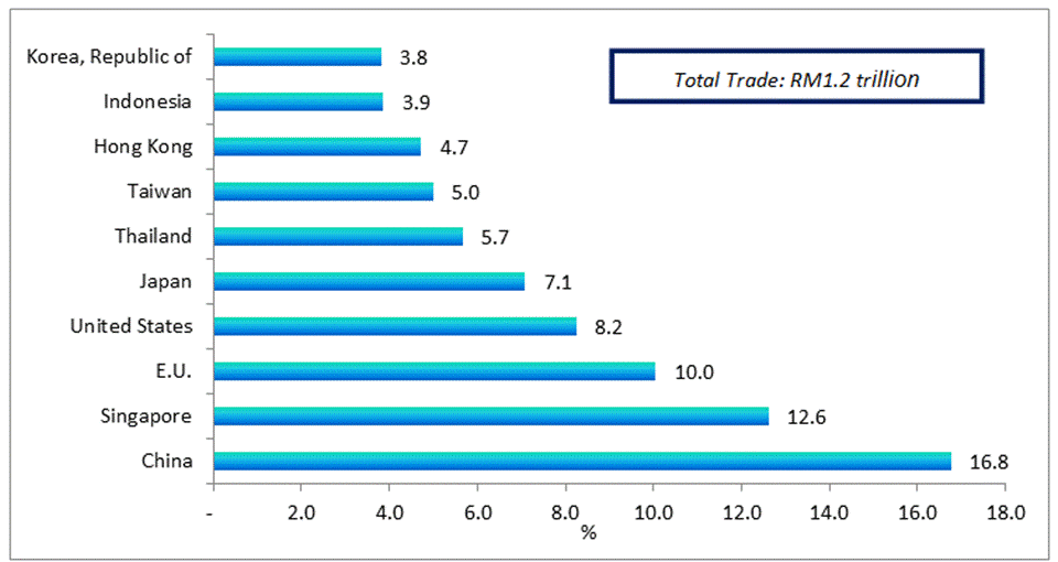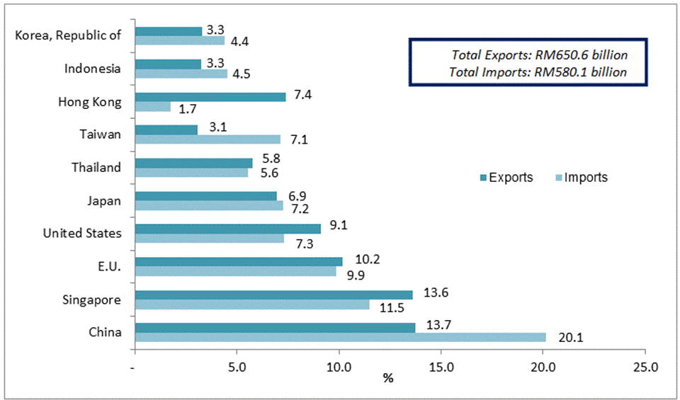 The following charts show Malaysia's major trading partners for January - August 2018.
