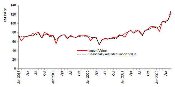 Chart 4: Actual Import Value and Seasonally Adjusted Import Value, RM billion
