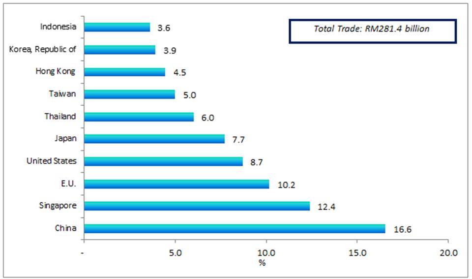 - Exports to China which were valued at RM8.5 billion also decreased RM138.5 million (-1.6%). The main products which attributed to the decrease were: