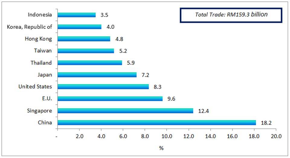 The two main sources of Malaysia’s import in January 2019 were China and Singapore. Imports from China amounted to RM17.9 billion increased RM2.7 billion (+17.5%) as compared to the previous year.