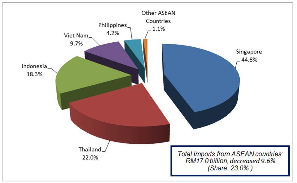 Imports from Singapore decreased RM1.5 billion (-16.4%) as compared to the previous year to record RM7.6 billion.