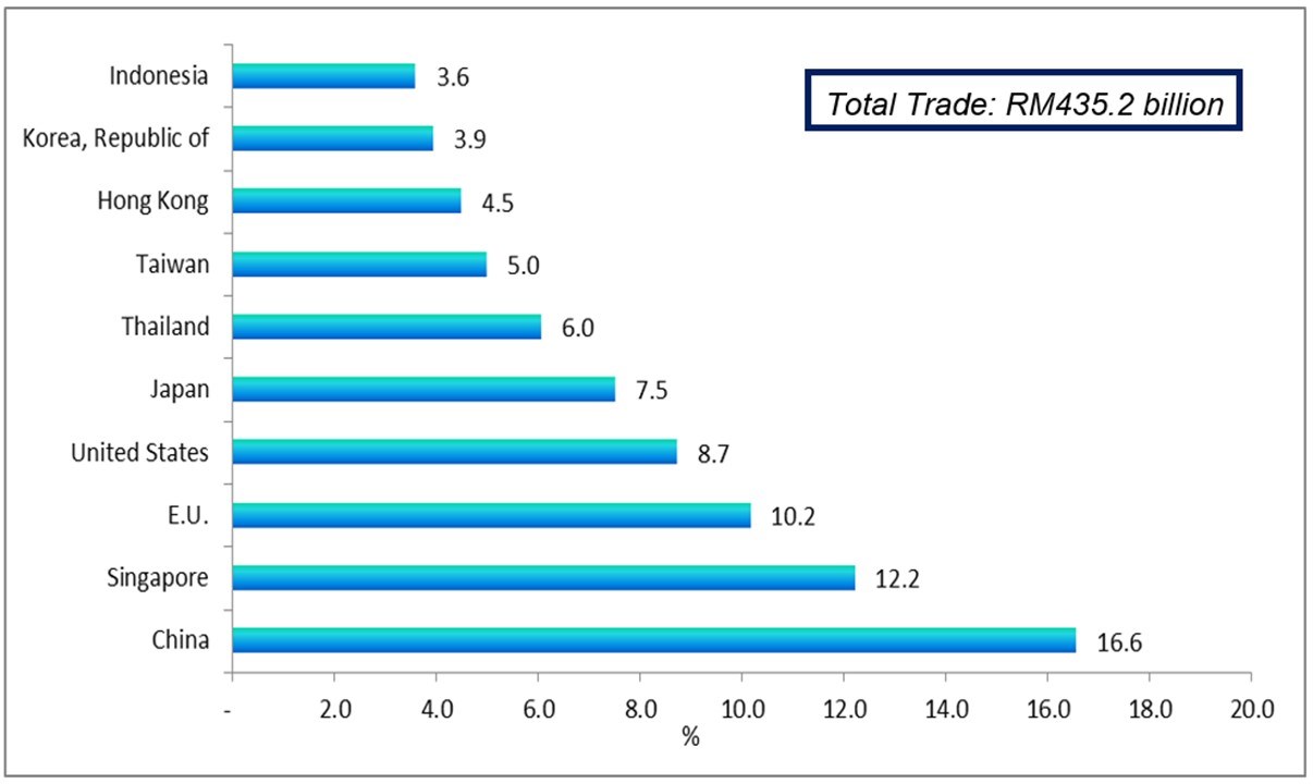 The following charts show Malaysia's major trading partners for January - March 2019.