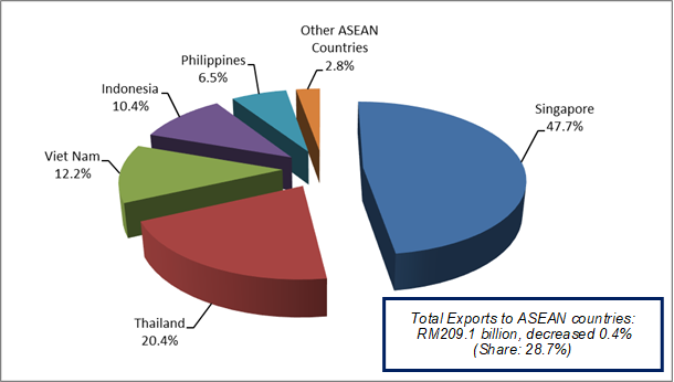Exports to Singapore which were valued at RM10.7 billion declined RM1.4 billion (-11.7%). The main product which attributed to the decrease was E&E products, which contributed 40.2% of total exports fell RM1.6 billion (-26.5%) to RM4.3 billion.