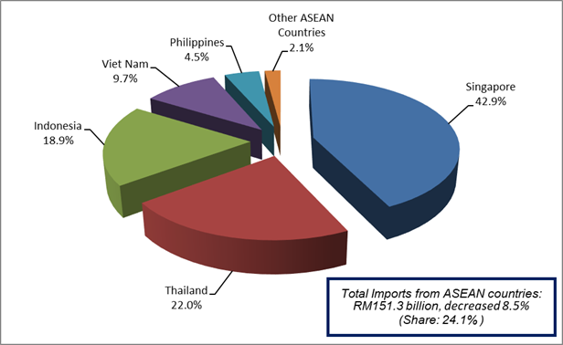 - On a y-o-y basis, lower imports were mainly from Singapore (-RM4.8 billion), Taiwan (-RM3.5 billion), the European Union (-RM1.9 billion), Thailand (-RM1.8 billion) and Switzerland (-RM1.2 billion). However, higher imports were from Republic of Korea (+RM1.3 billion), United Arab Emirates (+RM740.6 million) and Brunei Darussalam (+RM709.7 million).