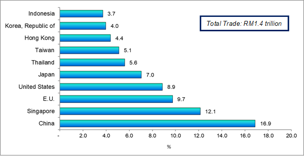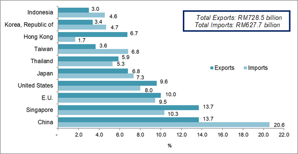 The following charts show Malaysia's major trading partners for January–September 2019.