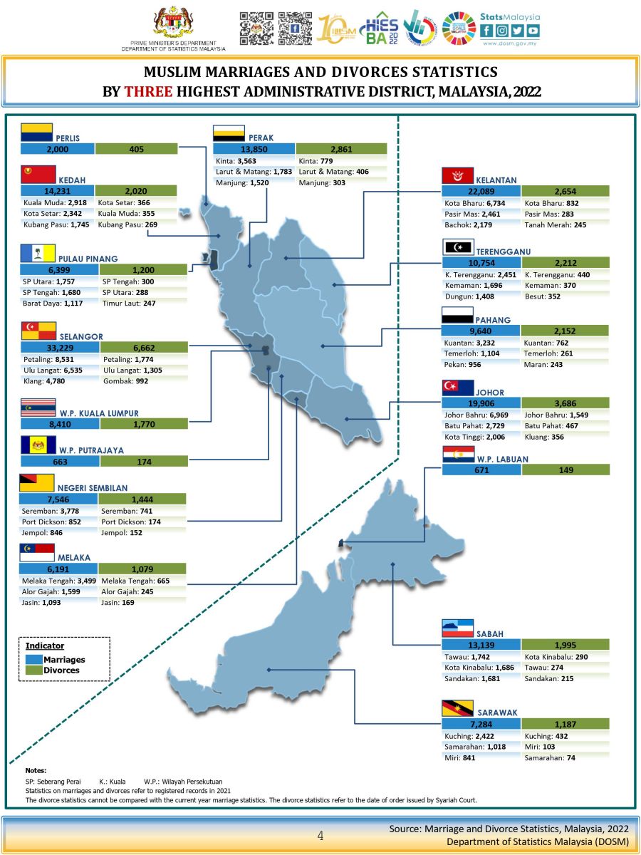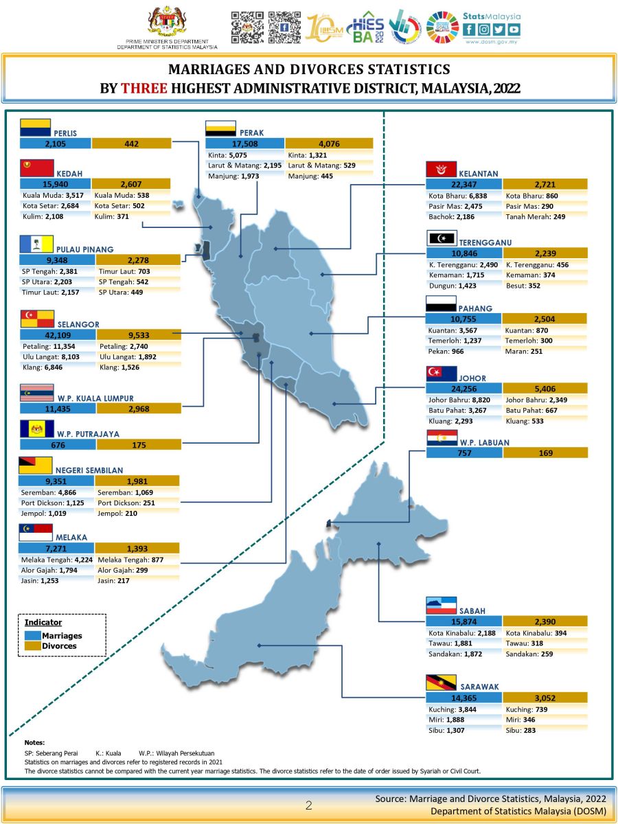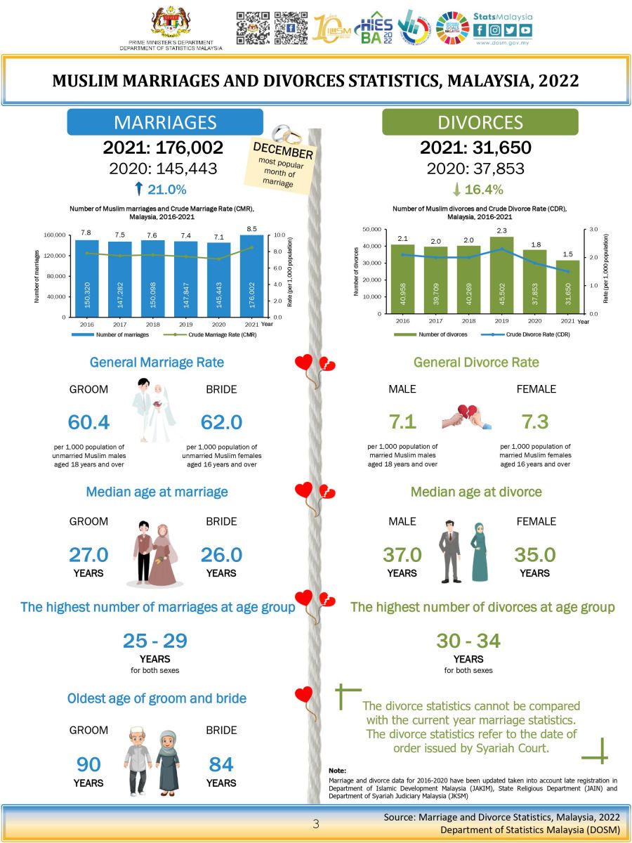 The full publication of the Marriage And Divorce, Malaysia, 2022 can be downloaded from eStatistik portal.