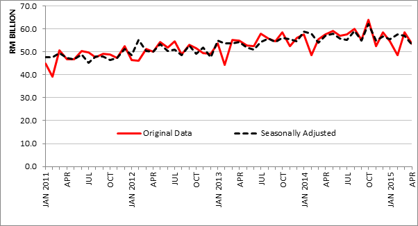 On a m-o-m basis seasonally adjusted terms, imports fell RM4.1 billion (-7.2%) to RM53.0 billion.