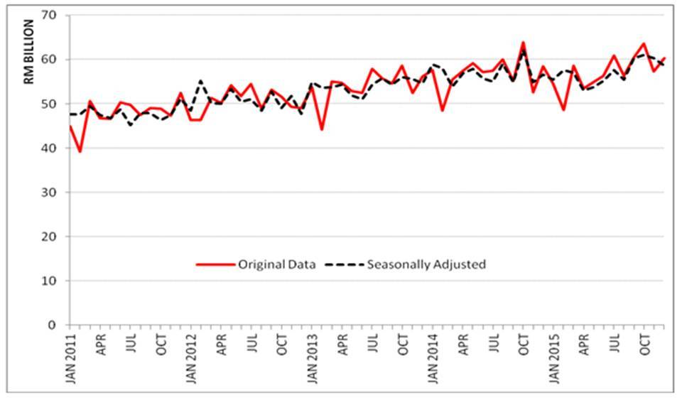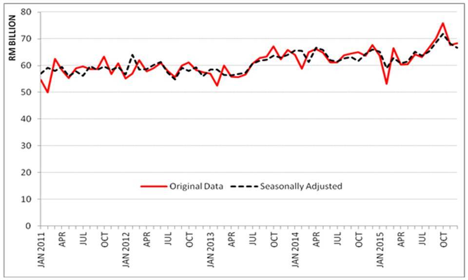 - On a m-o-m basis, imports also increased RM2.9 billion (+5.1%) from RM57.4 billion. In seasonally adjusted terms, imports dropped 2.9%.