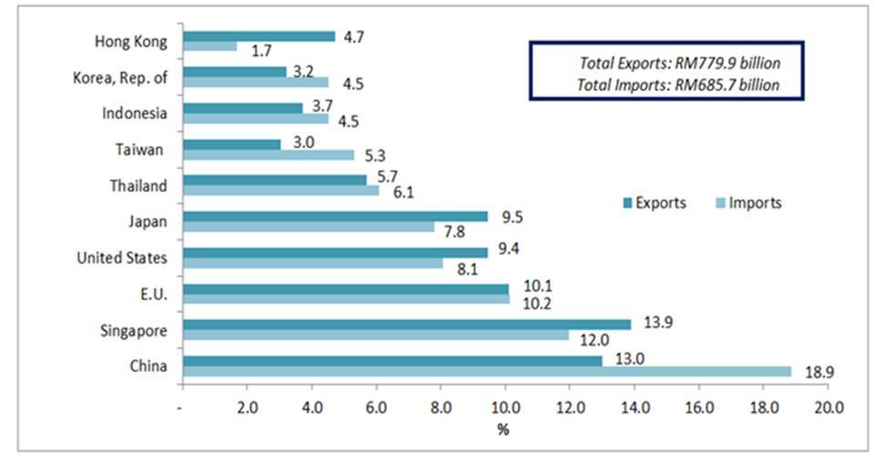 The following charts show Malaysia's major trading partners for January - December 2015.