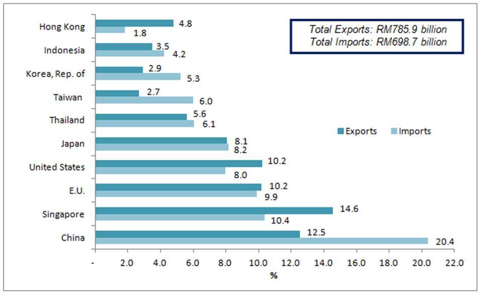 The following charts show Malaysia's major trading partners for January – December 2016.