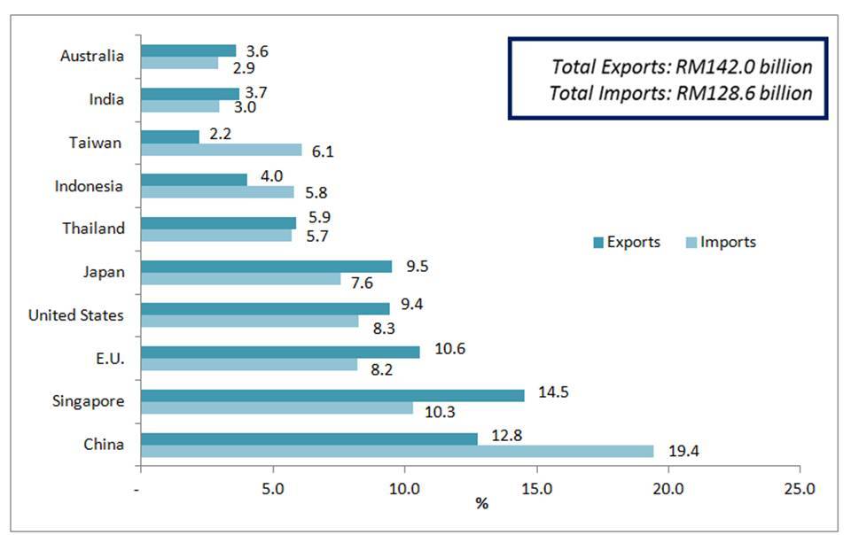 - On a y-o-y basis, higher imports were mainly from Indonesia (+RM1.7 billion), Singapore (+RM1.4 billion), China (+RM1.4 billion), Australia (+RM1.3 billion) and Taiwan (+RM1.2 billion).