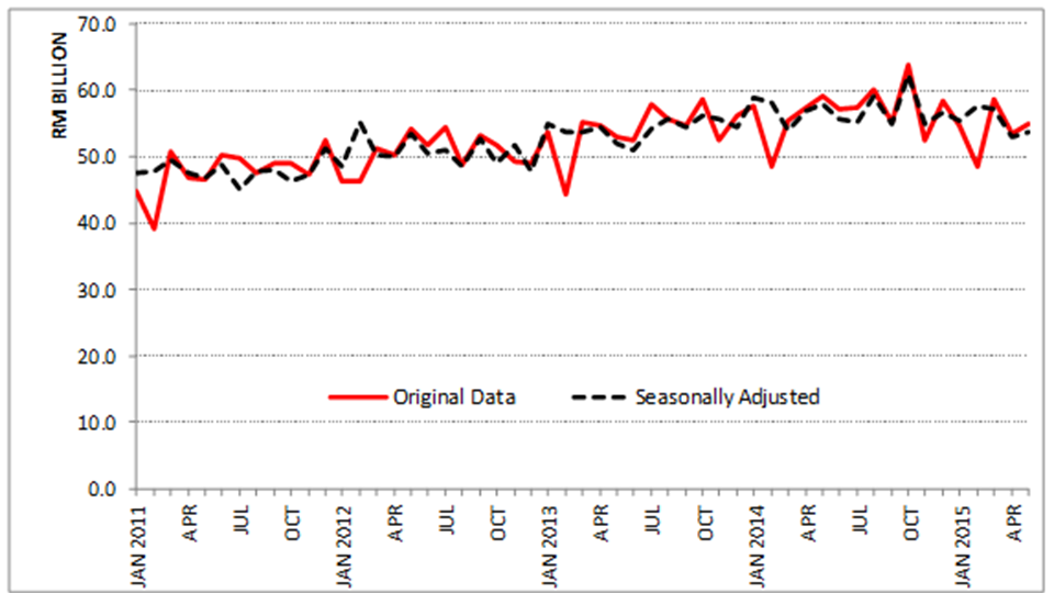 On a m-o-m basis seasonally adjusted terms, imports increased RM797.1 million (+1.5%) to RM53.8 billion.