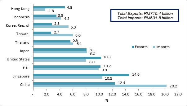 - On a y-o-y basis, imports increased due to the rise in imports from China (+RM2.2 billion), Japan (+RM1.0 billion), Taiwan (+RM993.2 million) and Brazil (+RM685.2 million).