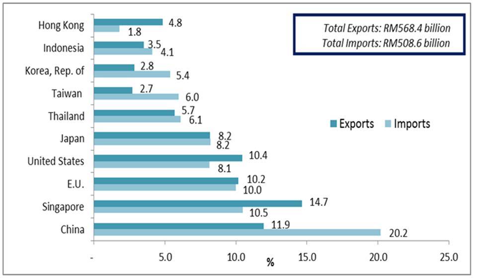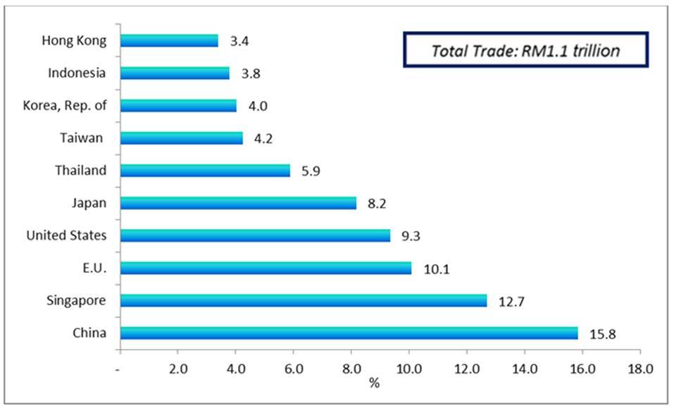 The following charts show Malaysia's major trading partners for January – September 2016.