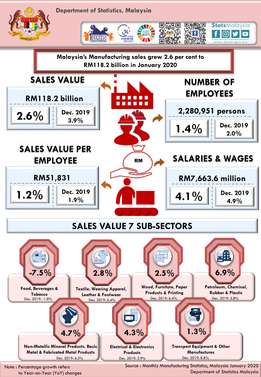 The full publication of the Monthly Manufacturing Statistics, January 2020 can be downloaded through eStatistik portal.