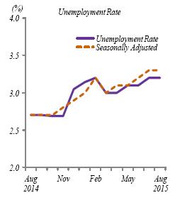 Unemployment rate remained at 3.2% The unemployment rate remained at 3.2 per cent similar with the previous month. Year-on-year comparison showed that the unemployment rate rose by 0.5 percentage points. The seasonally adjusted unemployment rate was 3.3 per cent, remained the same as in the previous month.