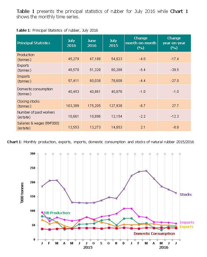 Natural Rubber production dropped 4.0 per cent in July 2016