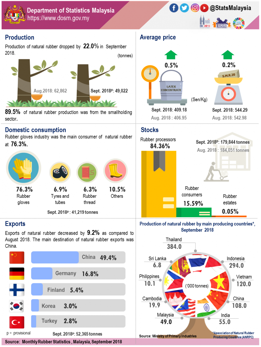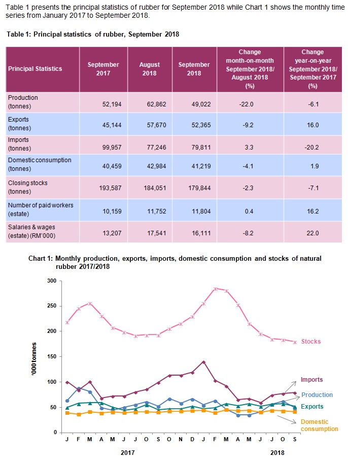 Natural rubber production in September 2018 slumped 22.0 per cent