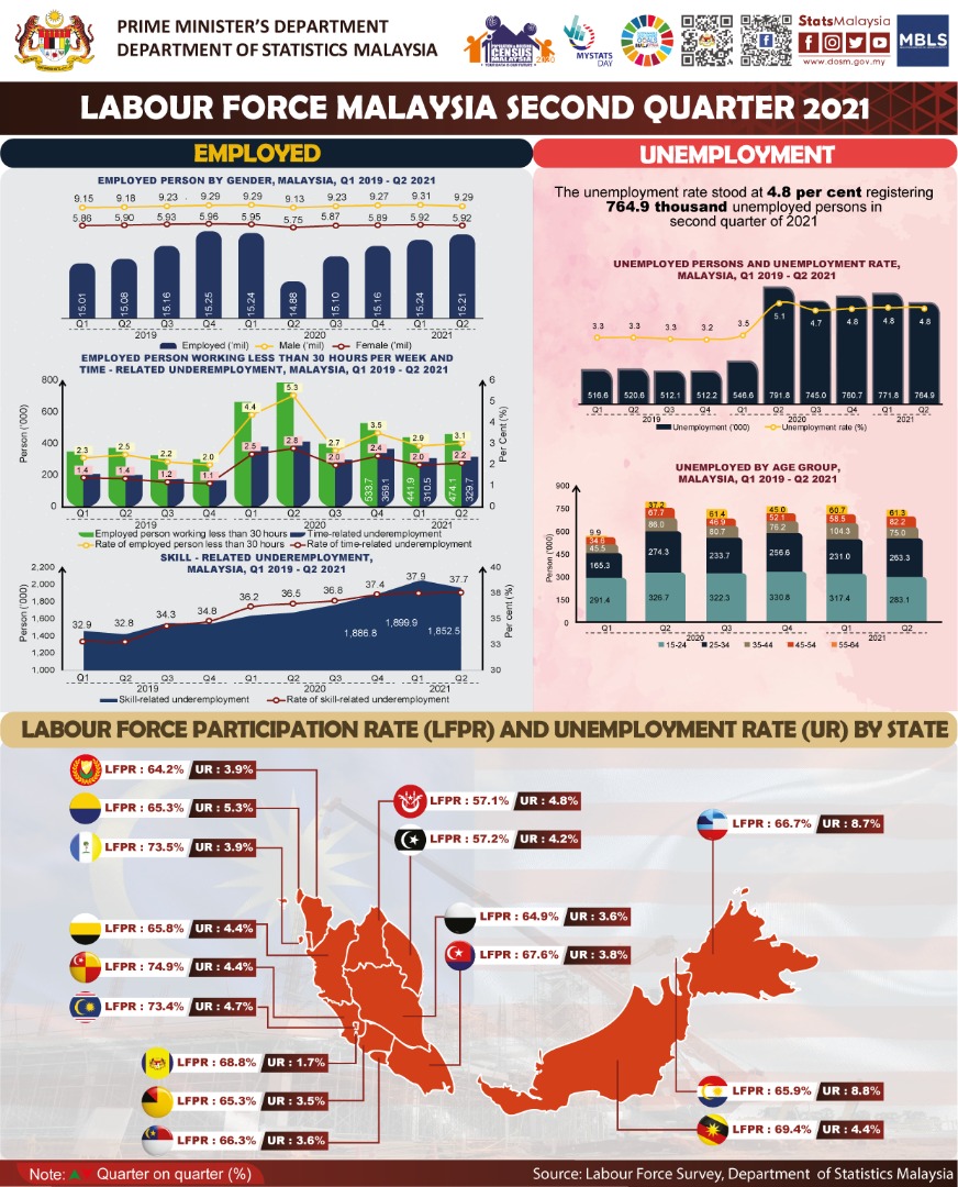 Principal Statistics of Labour Force, Malaysia, Second Quarter (Q2) 2021